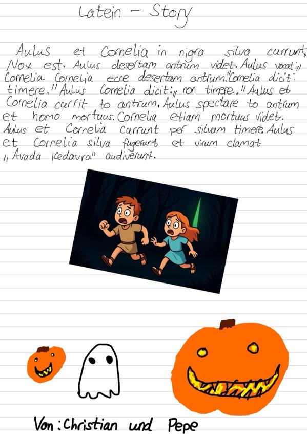 NIEDERAULA. Am 31.10.2025 war es wieder einmal so weit: Die Lateinschüler/-innen der Gesamtschule Niederaula haben wieder ganz kreative und tolle Ergebnisse beim Latein-Wettbewerb zu Halloween erstellt und eingereicht. Man konnte selbsterstellte Comics, Gruselgeschichten und Gedichte einreichen. Alles natürlich auf Latein, kreativ und lebhaft. Auf diese Weise stellten gleich zehn Schüler/-innen der Jahrgangsstufe 7, die gerade erst mit ihrem ersten Lernjahr Latein begonnen haben, ihre Lateinkenntnisse unter Beweis. Aus Jahrgangsstufe 8 gewannen zwei Jungen das Rennen um die kreativen Gruselgeschichten. Diese Jahrgangsstufe ist in Latein im 2. Lernjahr schon so weit, dass sie sich im Vorfeld mit dem berühmten, antiken Naturwissenschaftler und Historiker Gaius Plinius dem Jüngeren (auch Augenzeuge des Vesuvausbruchs in Pompeji) auseinandersetzten. In seinem Brief an den Freund Sura diskutiert er nämlich anhand der Erzählungen über eine Geistervilla in Athen, die durch den Philosophen Athenodoros aufgeklärt wurden, ob es Geister wirklich geben kann oder diese doch nur Abbilder menschlicher Ängste und Phantasie seien.